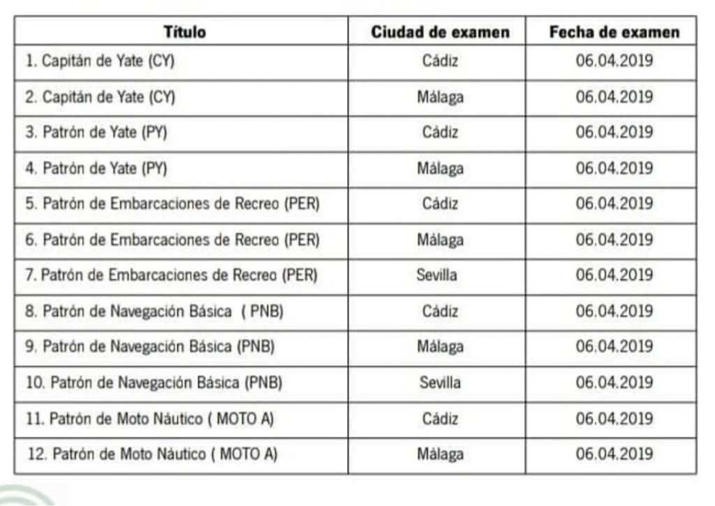Junta de Andalucía. Convocatoria de exámenes previstas para la obtención de título para el gobierno de embarcaciones de recreo y motos acuáticas para el año 2019, según está previsto que se publique en el BOJA.