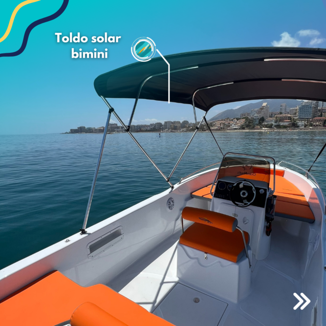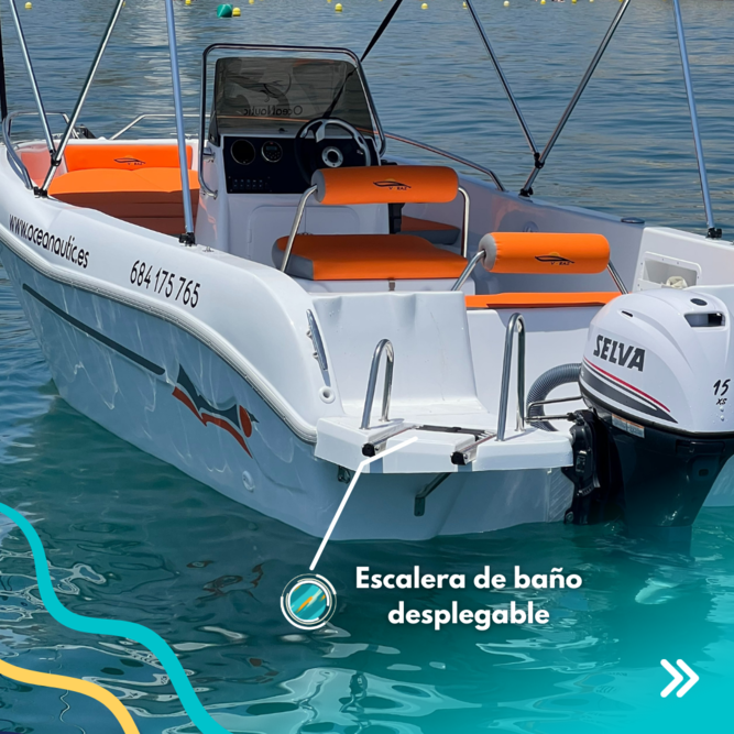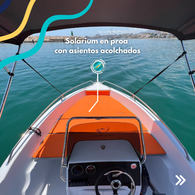 With Oceanautic you can rent a boat without a license in Puerto Banus (Marbella). We have a boat brand new 5 meters length to enjoy the sea with a relaxing experience. With the ability to navigate up to 6 adults and 2 children this boat is a perfect choice for a stroll along the coast with friends and/or family. You do NOT need TITULIN or License.