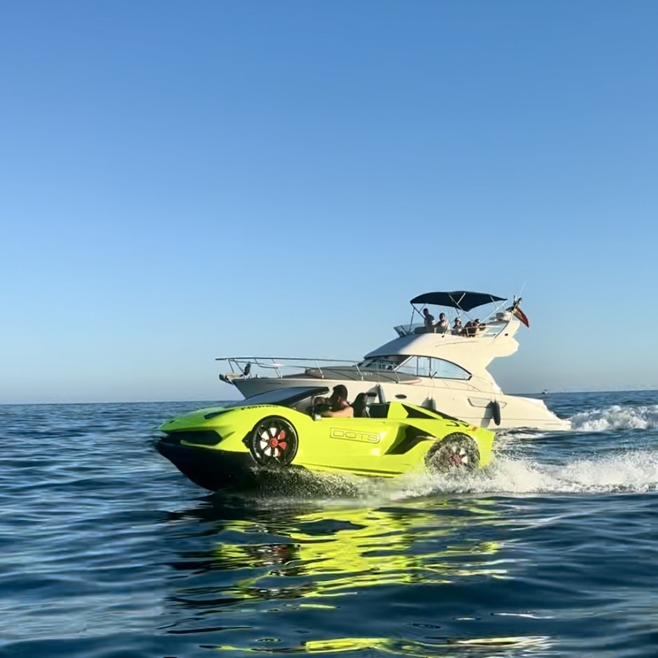 Con Oceanautic puedes alquilar tu jetcar en el Puerto Benalmádena (Málaga). Disponemos del jetcar Lamborghini a estrenar con un motor de 130cv.  Disfruta de una experiencia única y exclusiva en el mar. Con capacidad para navegar con dos personas, esta lancha es una opción perfecta para dar un paseo por la costa con amigos y/o familiares. Necesita TITULIN o Licencia de Navegación.